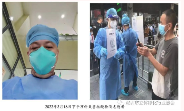 2022年3月15日,在接到龍崗區龍城街道的抗疫服務需求后,深圳市大業園林建設有限公司的總經理陳慶榮先生,毫不猶豫的組織動員公司員工參加抗疫志愿服務、支援第一輪全民核酸檢測。一整天的防疫工作任務中,維持秩序、掃碼登記、搬運物資、……面對每一項工作,陳慶榮先生都認真、耐心地完成。